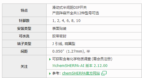 NIDEC Components 滑动型DIP开关CHS系列